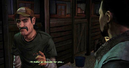 Andy will "ask" you to not hang around this door. Of course, Lee and Kenny's plan is to do exactly the opposite.