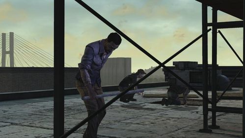After a while you get to the catwalk between buildings - you have to press a proper key to move to the other side (no worries, you won't fall).