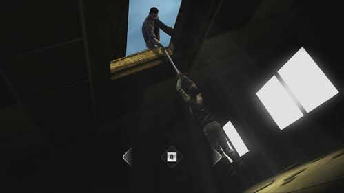 Unfortunately, you can't reach her - you must find another way. Look around the rooftop. On the right side you'll find a Pole - grab it.