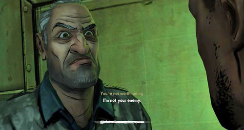 All the next conversations you will have (the first with Clementine, and, after regaining control of Lee, the conversations with Kenny and Lilly) will be completely different, which will depend on who you have just sided with (both what the characters will say and the answers you will be able to choose). It is worth adding that you can speak with Kenny several times while only once with Lilly. Still, your answers will not affect the gameplay in any way.