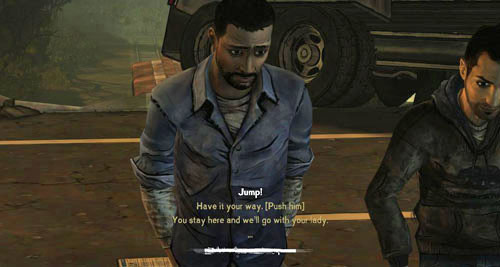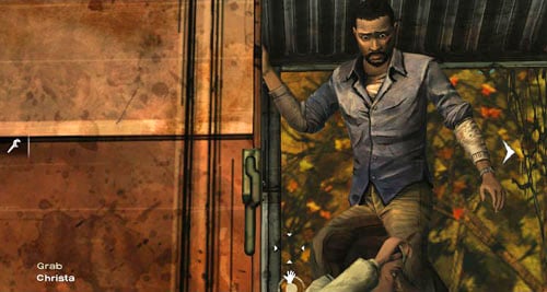 If you want to help Christa, look to the left and also pull her up (Grab: Christa). You can also do nothing - simply wait until the time is up (You didn't help.). However, if you want to save either of them, do not waste your time shouting at them.