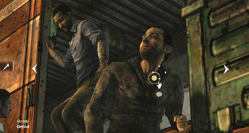 Do not worry, both of them will be saved. When it comes to the statistics at the end it will only count whether you saved Omid, or did something else. If you want to help Omid, look to the right and pull him up (Grab: Omid).