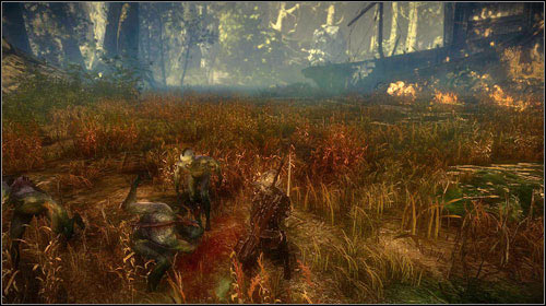Go east and take the path going up to the left. on your way you will come across two groups of thugs They shouldn't cause you any problems. You can help yourself with the Axii sign to take over one of them. Eventually you will reach Triss (M8, 11). Follow her down the rock ledges. Once you reach the very bottom, you will note footsteps. In a moment you will be attacked by a bunch of Drowners. They are large in numbers, so try to dodge frequently and don't attack them in a group. Yrden won't be as useful here as for example Quen or Axii and Igni. You also have a rather big chance of stunning the monsters with Aard.