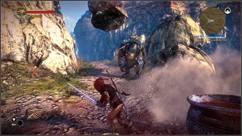 If you told the troll that you won't spare his wife, he will attack you. The fight shouldn't be hard, use Yrden to stun the monster and look out for his charge attack - try to fight at close distance, as he will start throwing rocks at you if you're too far away. Head south and turn left at the crossroads (on the right there will be the shipwreck). Climb up the rock ledge for a cutscene and you will reach the she-troll (M13, 11). You will once again have to make a choice: