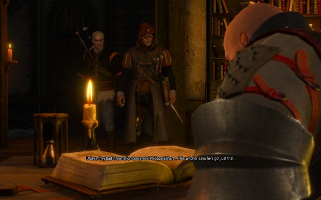 Triss will tell you to search for documents that will allow you to find Dandelion. Take the book and the Letter to Caleb Menge from the desk. Read it. A short scene will start during which the sorceress will give you a mysterious key and the key to the vault found at Menge's body. Your task in the Witch Hunters' building has ended. But don't leave it yet. First explore a bit and collect all valuable items.