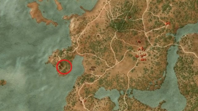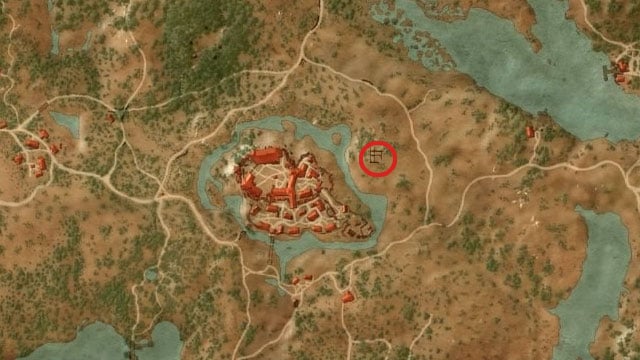 To the south of Velen lies Frischlow. Head south to the cave by the cemetery where the corpses burn.