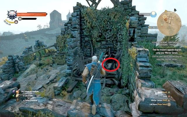 In order to get the enhanced schematics of the Griffin School Gear you will have to obtain two maps: Edwin Greloff's First Map and Edwin Greloff's Second Map. You can get both of them from the blacksmith in the Downwarren to the west of Velen (not far from the Keira Metz's house).