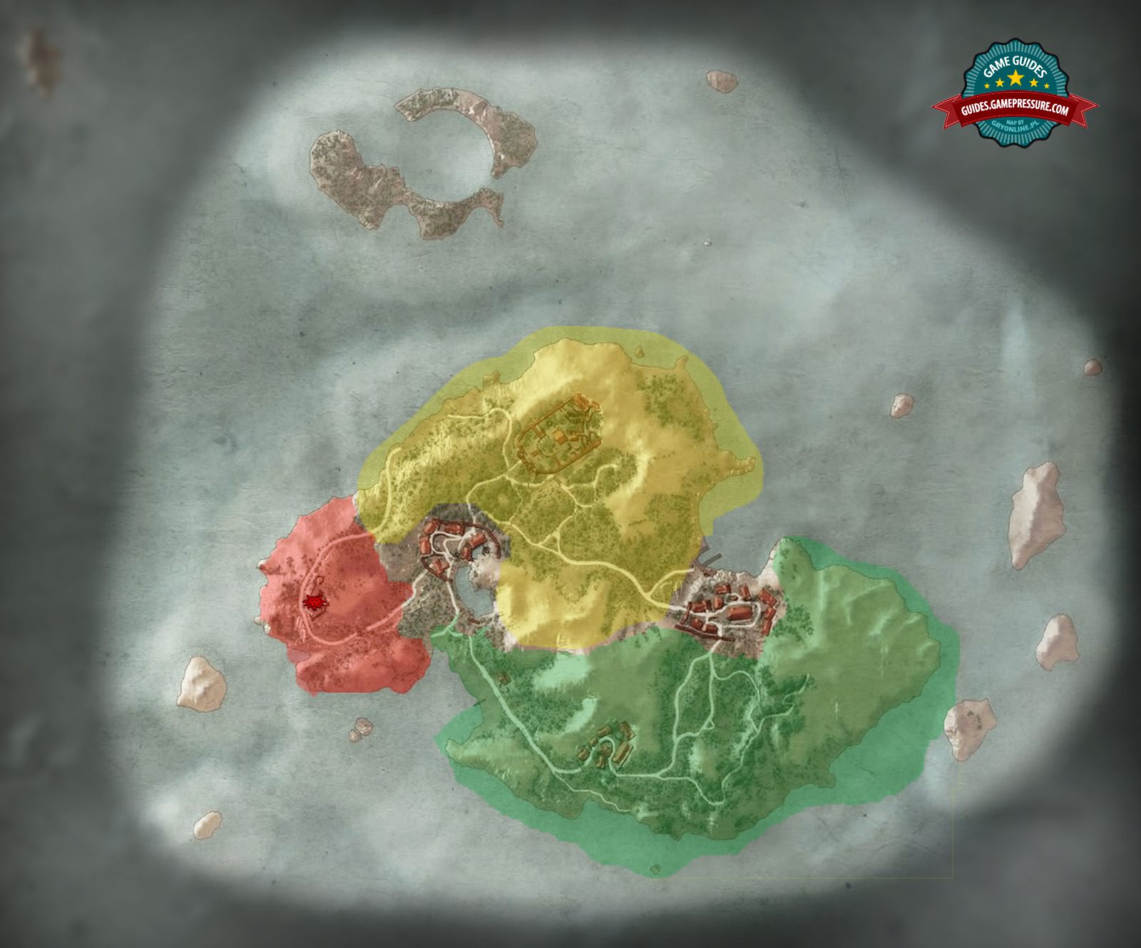 On this page of the Witcher 3 Wild Hunt guide, you will find a map of enemies encountered on the Hindarsfjall island from the Skellige archipelago. The different colors on the map indicate the threat level of enemies in the area. Thanks to this, we can avoid problems with stronger opponents from Hindarsfjall if Geralt is not strong enough yet.
