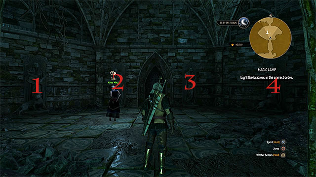 You can go further. Walk to the tombstone where Keira will find the lamp. Now all that's left is to leave the mage's hideout. Return to the fork where you started this quest and pick the stairs leading outside (remove another illusion at the end of the march). Listen to the conversation with the witch (100 experience points). She will invite Geralt to her and you will receive a side quest An Invitation from Keira Metz.
