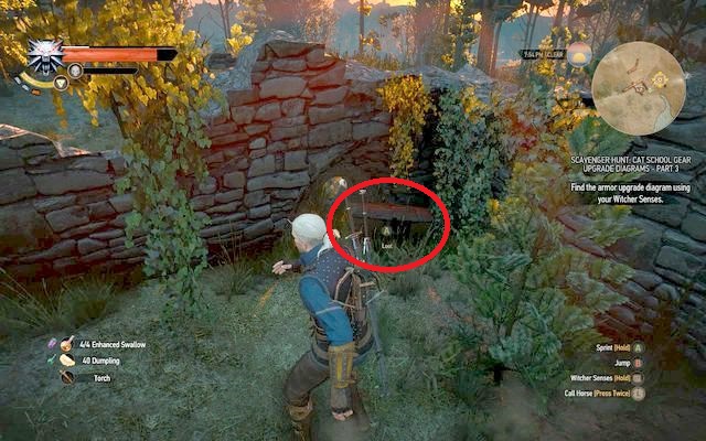 Schematics for the armor can be found to the south of Lindenvale. Far from the village you will find the ruins by a river, near the area where the Crookback Bog starts. There are some earth elementals wandering around and they are on a high, 27th level. There is a way to obtain the diagram without engaging in a fight with them but it's not easy. If you decide to fight them, use bombs and Quen. The enemy will be slow, thus making its' attacks easier to dodge. It is good to attack the elementals from behind.