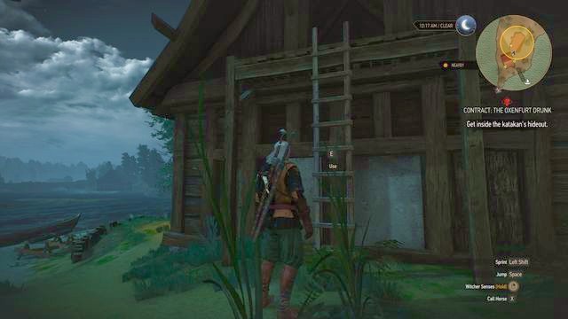 Now you must track him down with the witcher senses. The trail will lead you to a small hut on the city outskirts.