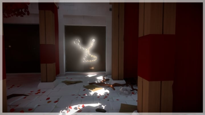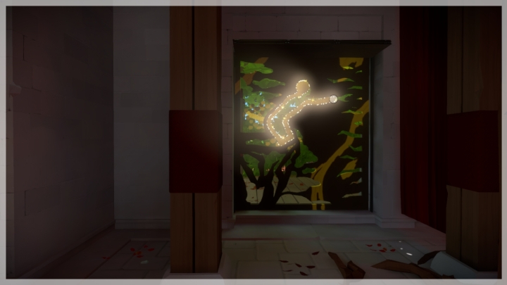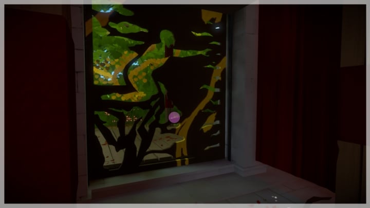 The last riddle will require the curtain to move. First position yourself correctly towards the window - only one gap for the route should be visible. Then you must activate the closing of the curtain. When it starts falling, you must begin solving the riddle and wait in the problematic point until the yellow painting on the dropping metal combines both paths. This will allow you to reach the end.