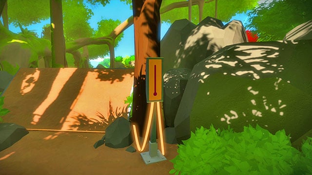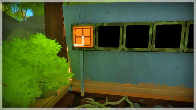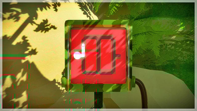 All of the puzzles in Jungle are connected with sound. Stand in front of the panel. After a while, you will hear a bird chirp. The pattern repeats over and over. Basing on the sound, you need to lead the line. When the pitch is high, lead the beam up and when it is low, lead the beam down. Later on, additional obstacles in the form of noise, appear. Ignore it and focus on the bird's chirping. After you solve each puzzle, follow the lit cable.