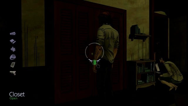 After fruitless attempts at saving Lawrence's life, proceed to searching through his apartment. You can find here a bloodied Knife, a pool of Blood, and a Bullet Hole in the wall behind the armchair. You may also interact with Lawrence to examine the area around Lawrence. There is a Gun and a Shell nearby. Then you may go to another part of the apartment. There you will find an ajar bed Panel and a suicide Note on it. After you have carefully investigated the apartment, walk toward Snow and use the Closet.