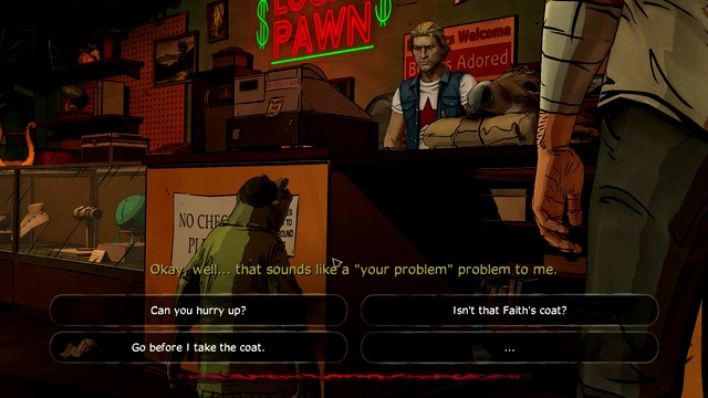 You get to Lucky Pawn, Crooked Man's pawnshop. You meet there Jack behind the counter and Toad trying to pawn Faith coat.