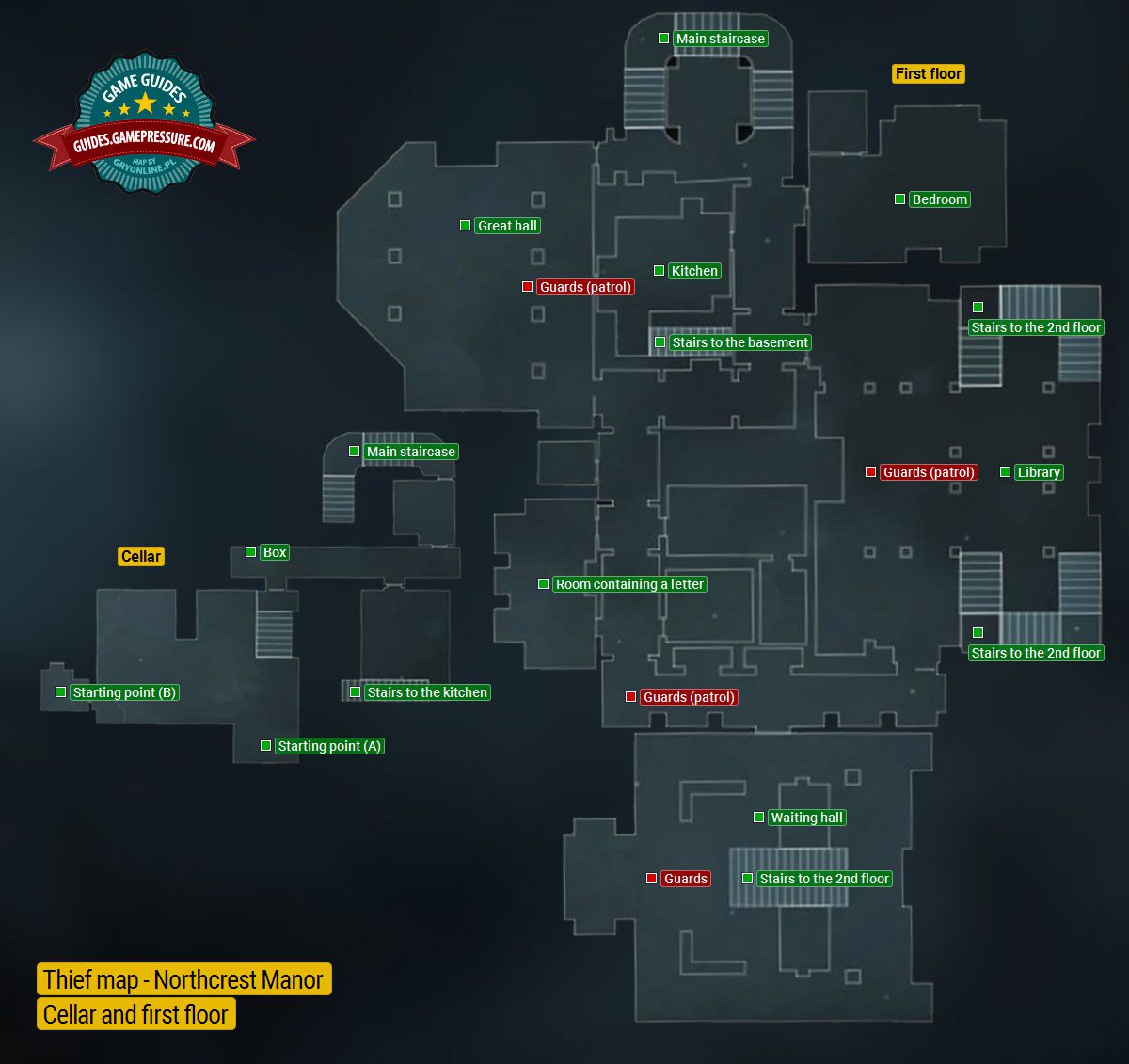 - Thief: Explore the cellars and the first floor of the Baron's estate - map