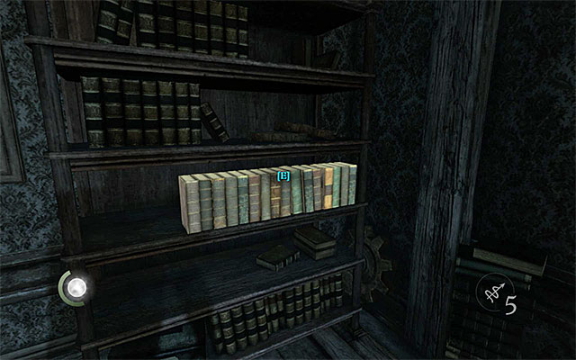 After you press the switch, go North and collect a Scroll Holder - 12G. Turn right now and walk into the room to collect a Wine Glass - 10G and another note (Ector Client Jobs - Project Pendulum - Day 13) of importance. Take a look around the room for books and examine them, thanks to which you will find the hidden switch. This will give you access to the fourth hidden switch.