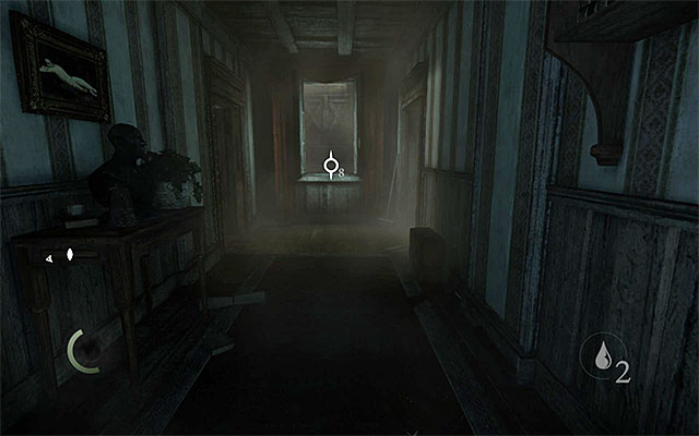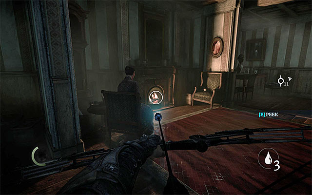 After you have explored the cellar and the building's main floor thoroughly, take the stairs to the first floor [Serendi Jewellers - Residence]. Also here, you need to keep sneaking because you will encounter another sleeping guard, and you will also run into the jeweler's wife in the room on the left. If you want to, you can use a water arrow to put out the fire, but this is not required. At the same time, you should watch out for the bird cage in the min corridor, by staying clear of it or by moving slowly.