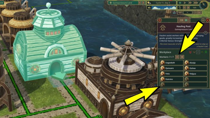 You can employ non-working beavers in buildings such as the district center or the hauling post, as long as there is available space. If a newly built facility requires a worker, remove one full-time position from the hauling post. However, keep in mind that the fewer carriers you have at your disposal, the slower your colony's transportation network will be.