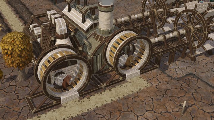 The power wheels will prevent your colony's output from dropping even during a protracted drought. Mills will continue grinding wheat and cattails, and workshops will keep producing materials to expand the city.