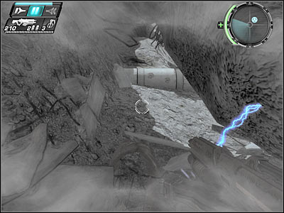 You won't have to explore the left corridor, because you won't find anything of interest there. Instead, go to your right. Once again, you will have to avoid receiving injuries from electrical discharges. As a result, activate a time stop option and head on to a safe area.