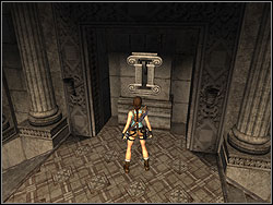 ![]() | Go on this platform, jump to the centre of the chamber and run to the other side of the room. Find the band in the wall, throw the line on it and twitch. Part of the column will fall down. By this way small bridge will be created. |