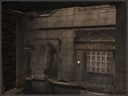 ![]() | Overhang from the edge, jump from the ledge to the ledge. Climb on the ledge near the bar, then jump to the bar. Jump on the small stone sill, move down to the niche. Go through the niche, overhang from the edge, go to the right, then climb on the floor level near to the gate of Hefajstos. |