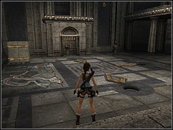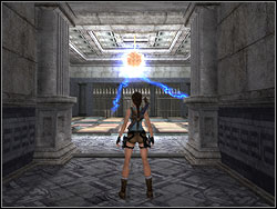 ![]() | Go to the right. There is a room with movable floor and strange, shining orb near the ceiling, which is shooting the lightings. You must push four plates, which are salient by standing on them. When you are running to the plates , try to dodge the lightings. After pushing all plates, the passage to the next part of chamber will unlock. |