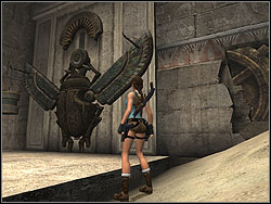 ![]() | From the ladder jump to the left on the Sphinx' head. Climb to the niche. Inside is Artefact 1/3. Leave the niche and back to the Sphinx' head. |