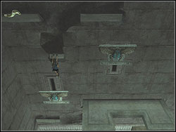 ![]() | Find the bend in the wall, jump to throw the line on the bend. Swing and leap to the small pillar and then on the stone platform. |