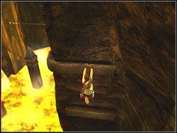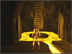| Artefact 4/4. After going between lava's steams you will come to the place, where the ladder is standing near the wall. Step up the ladder and look around. |