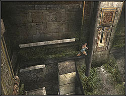 ![]() | Climb and turn back to the wall on the left side. Jump to grab the edge of the small corridor. Go inside and take Artefact 2/2. Turn to the pillar and jump to it. |