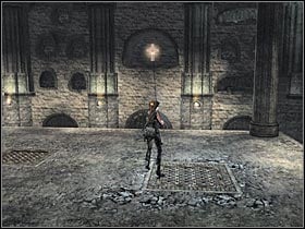 Once you've reached the first room with a destroyed floor, turn right. You should be able to locate a small entrance (#1). Make a jump towards it. Climb up and enter the new room. Pick up the bronze cross (#2). Be careful! You will have to make a single jump while leaving this room in order to avoid hitting the ground.