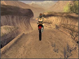 You should be able to reach the first group of enemy soldiers in just a few seconds (#1). Listen to what the game has to say. You will have to use the G key in order to concentrate your fire on the nearest opponent. It would also be wise to change your position often, so you won't get hit by too many bullets. Once you've dealt with the current group, you will have to reach the next one. Be careful while driving through small caverns (#2). It's very easy to hit something here (or even get stuck). You should also be searching for any additional medkits. They will appear on the road from time to time.