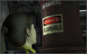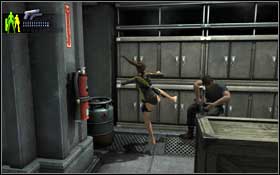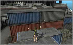 There are few enemies between the containers. Shoot them, evading their attacks in the same time. A very effective method of fighting with them is also approaching to them and kicking (E). In most cases you have to hit them twice to knock them out.