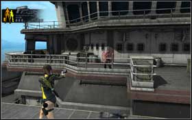 Keep moving to the stern. During the move, you will encounter several enemies. Don't forget that Lara is equipped with sticky grenades. They are perfect for eliminating groups of 2-3 enemies. Move down to the helipad and find the door leading inside the ship.