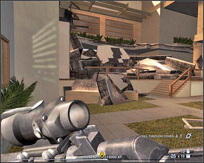 You can't expose yourself too much for obvious reasons. The gunship will once again start using its minigun, but you shouldn't be worried about that. Instead, try eliminating a few other terrorists. Prevent them from getting closer, because that's when they like to use grenades. If you see one of the grenades flying towards you, change your position quickly in order to avoid being killed.