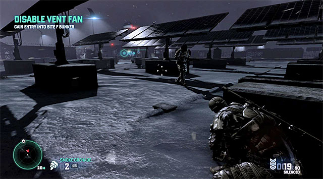 Right after you regain control over your character, turn left and go towards the roofed area. Adopting this tactic will allow you to, first of all, to avoid, effectively, being detected by snipers who are monitoring the area in front of the meteorological station. Also, you will not have to worry that you may be spotted by a single terrorist that is patrolling this area. You, of course, need to avoid this enemy so, dash between covers on a regular basis and, if the need arises, wait for the enemy to turn away.