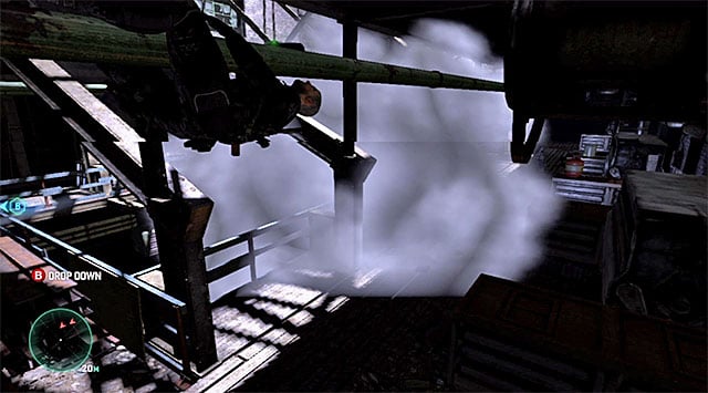 Follow your ally and reach the new area on the higher level. Also here, you are up for fights. This time around, you can ensure yourself with a good position to shoot from the stun gun or to get the enemies from behind, thanks to the pipe attached to the ceiling, shown in the screenshot. Just like in the previous fights, you need to eliminate all of the hostile mercenaries. The only thing left for you to do is reach, with Briggs, the roof where this mission will end.