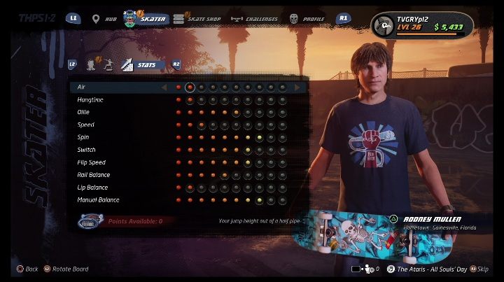 - Tony Hawks Pro Skater 1+2: Characters and skills