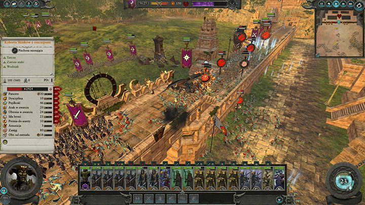 An additional asset are defense towers. For them to function, however, you have to order your units into the tower control field on the wall and take them. It is best to deploy units by the tower at the stage of deployment, where the enemy will be within range. Keep in mind that towers can shoot ahead, within a limited range and the range is limited as the enemy approaches. This is why, as soon as battle begins, pick specific towers and concentrate their fire on important units of the enemy army, preferably his siege towers. Fire from two of your towers should deal with them quickly and at the same time, deal considerable damage to the units that manned them. When some other units come within range of your towers, and not siege towers, it is best to focus your fire on artillery in the back and awaiting cavalry, if only enemy has such units.