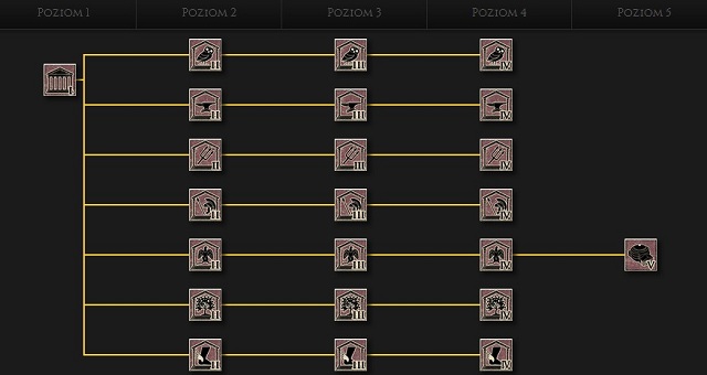 Below you'll find a short characteristic of each buildings group along with sample development tree (based on Roman culture).
