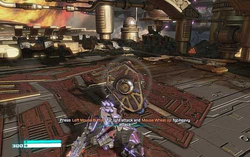 At the end you will have to choose between Megatron and Optimus in final fight (it doesn't have any effect on the ending). The fight is on swords - you can attack light (left mouse button), strong (left mouse button) and defend with shield (ctrl). If enemy is using shield (picture) try attack him with strong attack and defend from his blows. When he doesn't use shield use light attacks. During the clinch quickly press left mouse button. You have to win three clinches - after every one opponent will more aggressive and dangerous so be careful. Remember to dodge and use shield and you should easily beat him which will end the game.