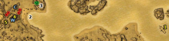 This quest consists of several other quests, described one by one, but it begins with finding the cemetery situated on a distant island. Use the abovementioned map to reach the place. It's best to use a boat and leave it there for a while, as you'll discover new teleports on the island. Depart from [1] to [2] and leave the boat here. A teleport called Old Cemetery in [5] is your destination.