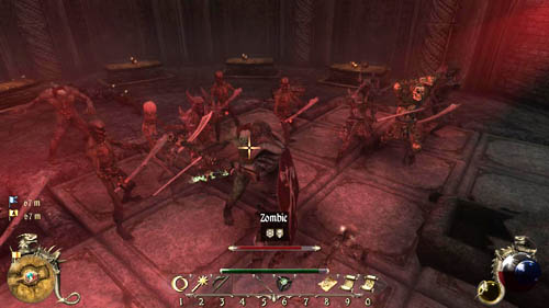 Save the game and run to [9]. Your comment will attract the spectators' attention and they'll all attack you. There are a lot of enemies here, so the fight will be very long: Zombies, Undeads, Dead Knights, Necris and Mummies. You won't be able to run away, as for now the door is locked. You'll receive 20,000 XP after neutralizing all enemies. But this is not the end of the task.