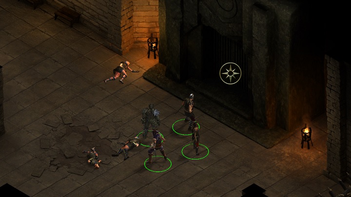 Reach the place presented in the screenshot. You will end up in Ascension Hall where a showdown will take place. Before you actually reach the upper level, make sure to give healing potions to your allies and assign appropriate talents. Use the travel sign when you are ready.