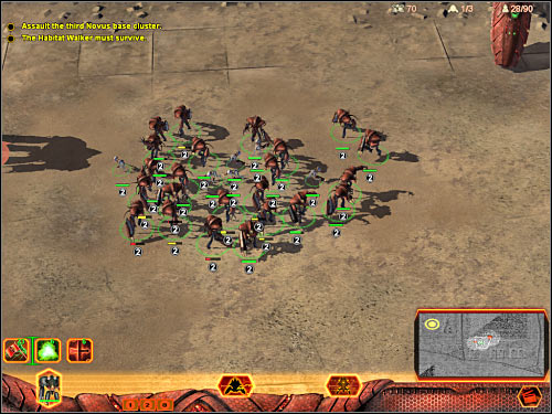 The final phase of this mission is going to be quite simple. Select all your units and start moving north-west. That's where you'll be able to find the third Novus base (5 on the map). Obviously you will have to remember that your Walker is moving very slowly. Prevent your standard units from moving too close to the base. That also includes your main character Orlok. Wait for the Walker to reach this new area. Once it's there, focus on destroying the Flow Generator. Once again, you should consider activating the Siege Mode ability. After that, deal with the remaining Novus buildings. Nanocenter seems to be the most important one, so make sure that it goes down quickly. Allow all your units to take part in this battle. Once you've destroyed the third base, this mission will come to an end. You'll also be rewarded with a longer cut-scene.