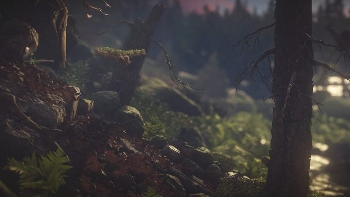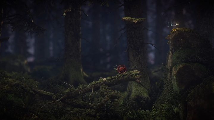 After going past the memory, you will encounter another challenge. You have to jump down from the branch and move the item lying underneath it. Take it to the left, so that it lifts the branch, allowing passage.