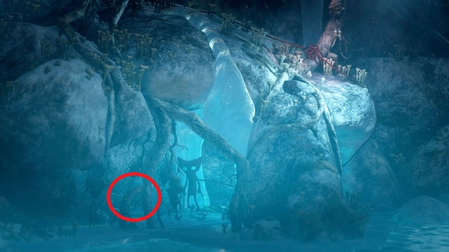 In the cave you will also find another (third) button - you must lower yourself and jump on the ice. The button is lying in the corner on the left side.