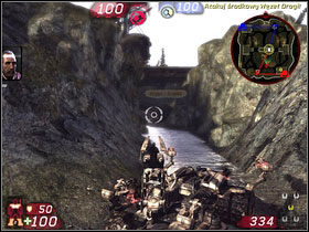 Description: Easy one. Two most strategic places are: Rocket Launcher on the second floor of right building [1] and extra Armor in draining canal [2]. Just behind Armor you'll see extra Health and stairs to ASMD weapon and ammo.